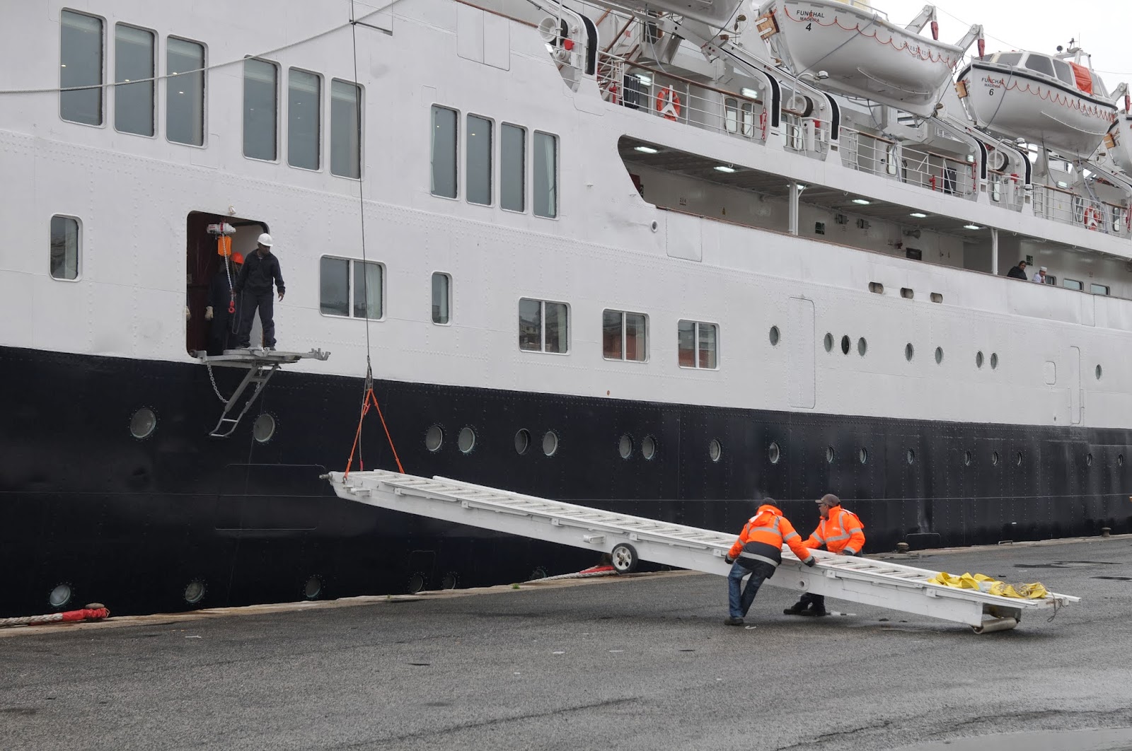 O paquete FUNCHAL, que se encontra atracado em Lisboa, no cais de Santa Apolónia, desde 21 de Outubro, está a passar por trabalhos de manutenção técnica a dois níveis: manutenção de rotina e conservação do navio, caso do retoque da pintura do casco e exteriores em geral, e ajustamentos e complementos relacionados com a profunda intervenção técnica e reclassificação concluída em Agosto deste ano.